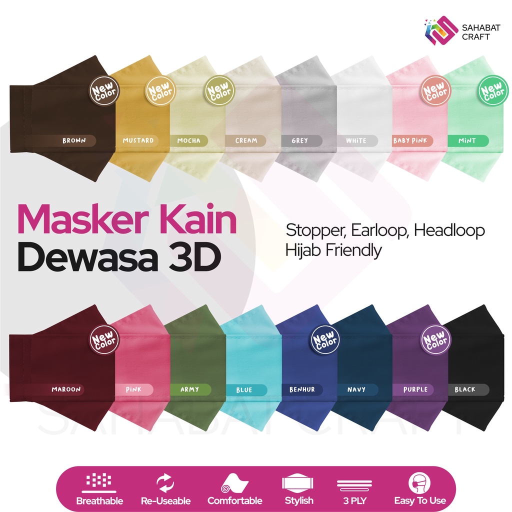 MASKER KAIN 3D KF94 | STOPPER KALUNG MASKER/EARLOOP/HEADLOOP HIJAB FRIENDLY PREMIUM QUALITY