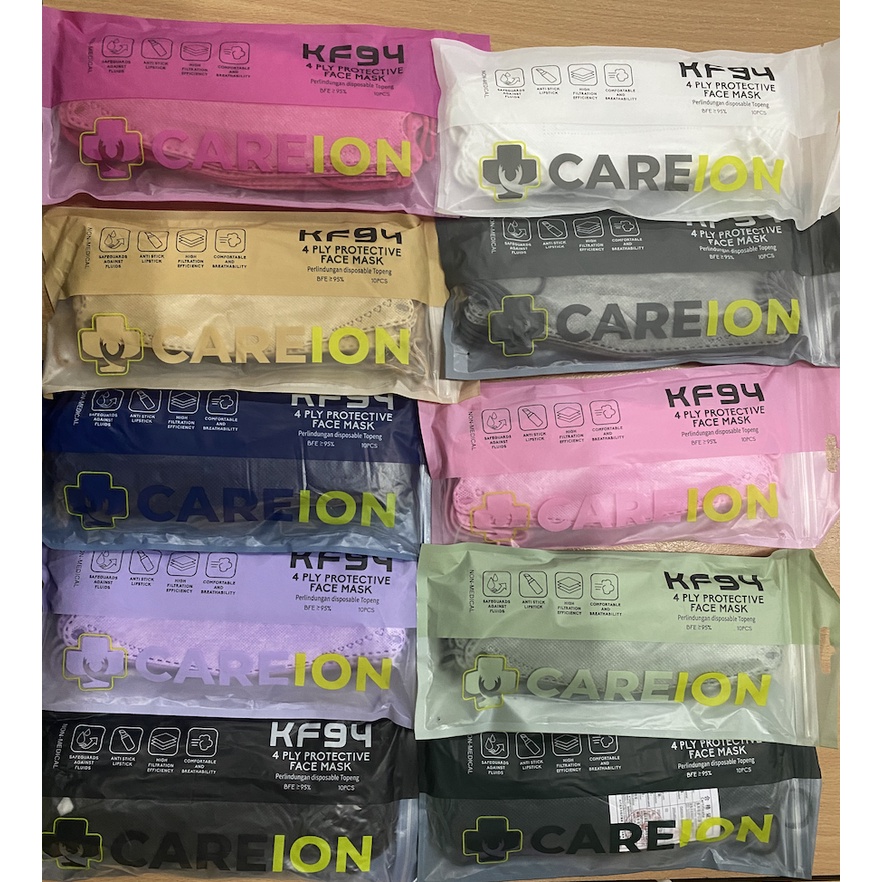 [ MASKER 4D CAREION WARNA KOREA ] ISI 10 PCS KF94 KN95 Duckbill 3ply Hitam Putih BFE95 Anti Virus Original Medis COD